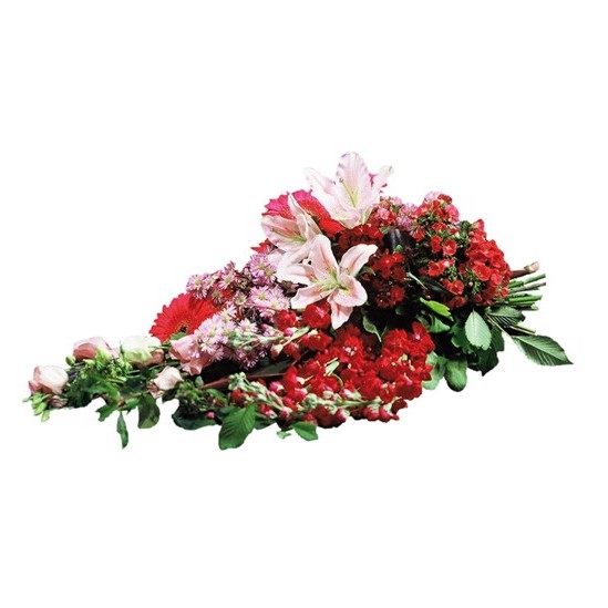 Um Ihre tiefsten Gefühle auszudrücken, wählen Sie das Trauergesteck „Hymne“, ein tiefes Rot, gemischt mit einem friedlichen Rosa, als Symbol ewiger Zuneigung. Sie können das Gesteck mit einer Beileidsbekundung an die Familie des Verstorbenen ergänzen.
